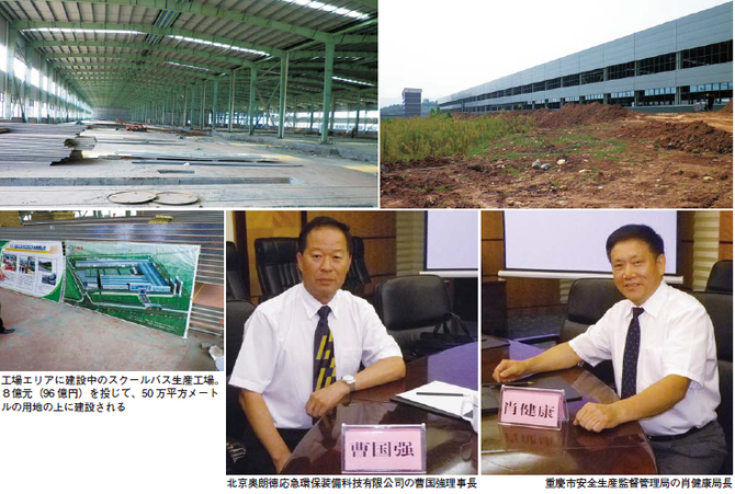 安全産業基地で、すでに量産体制に入っているのが商用車製造大手の深セン五洲龍汽車有限公司が100%出資する「重慶五洲龍新能源汽車有限公司」。世界で最も安全性の高いハイテク・スクールバスを量産し、全国の学校へ導入させる計画を進めている。