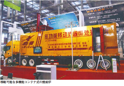 3つ目は、移動可能な多機能コンテナ式の焼却炉 の製造。トラックやヘリコプターで被災地まで運ぶ ことができ、その場で瓦礫やごみ、動物の死体など を高温焼却できるという。ダイオキシンなど有害物 質が外に出ないよう、煙突部には高性能のフィルタ ーが設置されており、性能と値段のバランスにも優 れているとする。開発した北京奥朗徳応急環保装備 科技有限公司の曹国強理事長は、 「東日本大震災の 瓦礫処理などにも有効になることを確信している。 この技術を世界に広めていきたい」と話す。 安全応急産業基地には、ほかにもイギリス、ロシ ア、カナダの企業らの誘致が内定しており、日本企 業に対する期待も大きい。