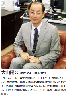 被災時における金融機関の役割は大きい。日本銀行では、被災地の現金需要に応えるため、被災翌日から金融機関への現金供給にあたるとともに、各支店や事務所で、水に浸かったり、火災で損傷した紙幣の交換作業にあった。盛岡事務所の大山陽久所長は、「実際に被災後の対応にあたる中で、事業継続計画(BCP)のポイントが何点か見えてきた」とする。