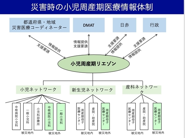 専門医同士は日常から連携がとれていたりするのですが、いざ被災してみると、行政との連携がうまくいかず混乱するということが各地の災害現場で起きています。そのため、行政との橋渡しを実施するのが災害時小児周産期リエゾンの役割です。
