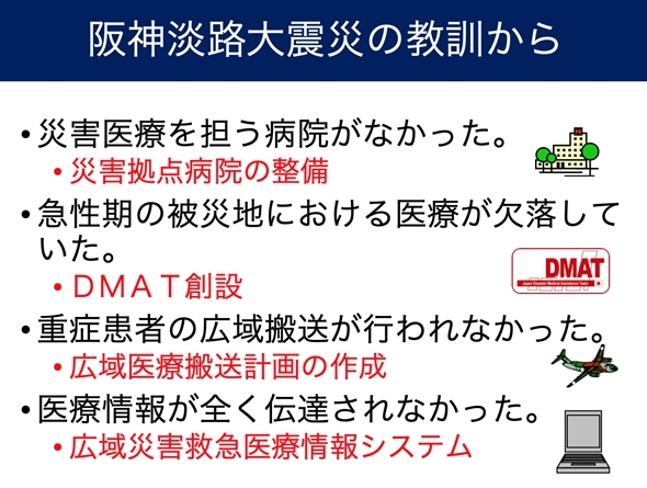 災害時小児周産期リエゾンのお話を深める前に、DMATがなぜできたかということについて簡単に説明します。