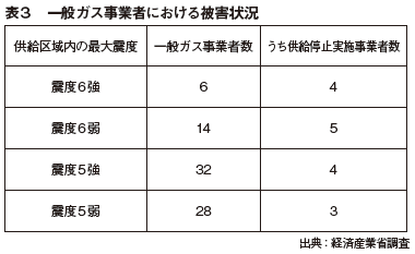 広い範囲で被害が発生した東日本大震災での一般ガス事業者の被害を表3にまとめた