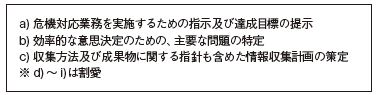 a)危機対応業務を実施するための指示及び達成目標の提示