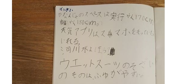 私の話す内容に誰よりも反応し、「そうなの!?」とか、「ええっ?」とかリアクションをしっかりを入れてくれるのです。それだけではなく、びっしり取られていくノート。いや、小1ですよ。字を習い始めて「あいうえお」をやっと上手に書けたかどうかと言う子もいる子もいるような小1で、防災ノート取りまくり。