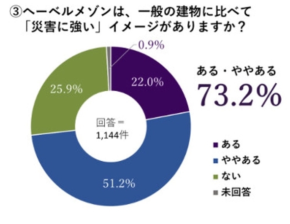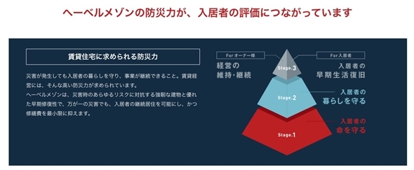 へーベルメゾンは、一般の建物に比べて災害に強いイメージがあると答えた方が73.2%という結果になっています。これまで災害対策をされてきたので、たとえ、絵的には派手ではなくても<家の使命は住んでいる人の命と暮らしを守ること>だから、必ず実施しなければ、そう担当者の方が強く願い、この防災パッケージが実現したというのも分かります。