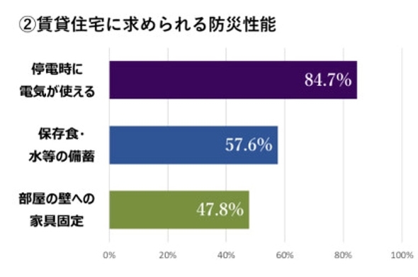 アンケートではさらに、賃貸住宅に求められる防災性能が質問されました。すると、