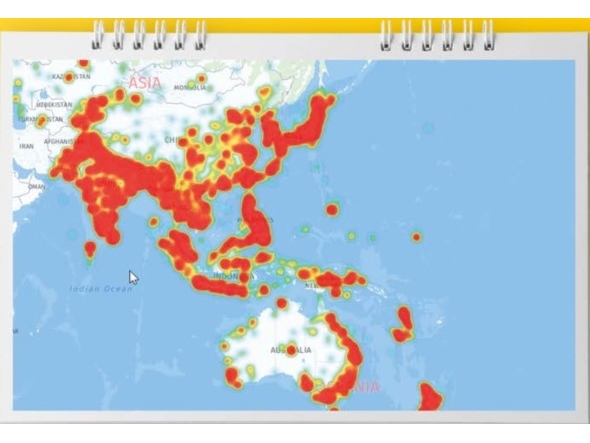 Part3ではインシデントの状況が地域ごとにまとめられている。一例としてアジア太平洋地域の状況を見てみると、まず国別では、最もインシデントが多かったのがインド(16.1%)、ついでオーストラリア(13.0%)、日本(9.9%)の順となっている。中国は 6.7% で 5 位となっているが、中国(特に辺境地域)ではインシデントに関する信頼できるデータの入手が難しいという断り書きが付記されているため、実態としてはもう少し多いのかもしれない。ちなみに本稿のトップに掲載した図は、アジア太平洋地域におけるインシデントの発生状況を図(heatmap)にしたものである。
