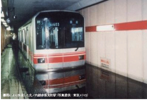 都内の地下鉄における過去の浸水被害は、1993年8月の台風11号による浸水と、1999年8月の集中豪雨による浸水などがある。前者の浸水は銀座線虎ノ門駅から赤坂見附駅間で、溜池山王駅設置に伴う大規模改良工事を行っていたところ、その工事区域から雨水が浸入した。後者は、工事中の銀座線溜池山王駅や、半蔵門線渋谷駅、建設中の南北線麻布十番駅でも浸水した。