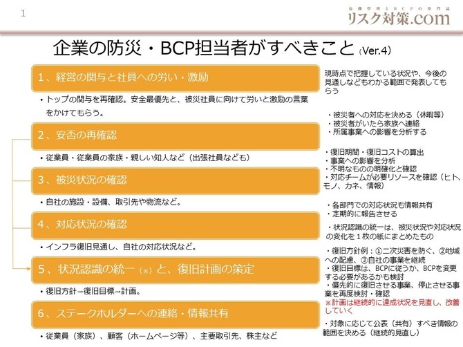 企業の防災担当者はまず何をすべきか。項目をまとめた。