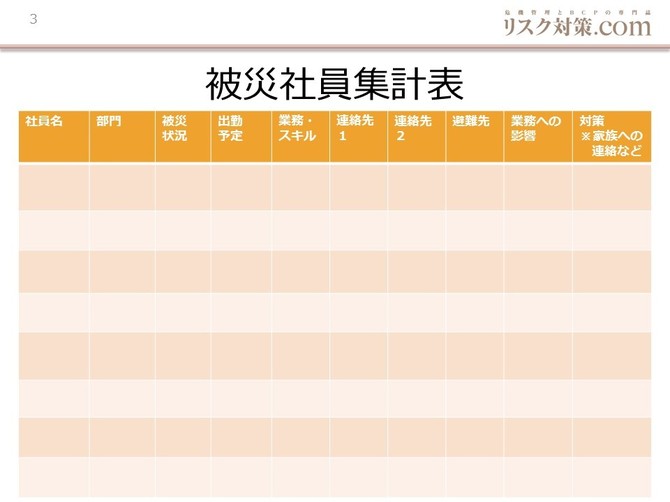 15日(金)の時点で安否確認が取れていても、状況が変わっている可能性は大きい。本社が非被災地にあっても従業員が被災地に出張やプライベートの理由で行っている可能性もあるため、再度安否を確認し、被災された従業員がいないかを把握する。被災された社員がいた場合、会社としてどのような対応をとるのか、その社員が出勤できないことにより、どの事業にどのような影響を与えるかも確認しておく必要もある。本人が被災しないまでも、家族や知人が心配で出勤できないという人もいるかもしれない。