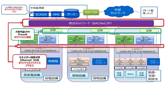 上記の各種ホワイトリスト制御をビルの制御システムに対して実装したイメージを以下に表示しました、ご覧ください。