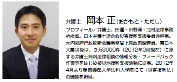 東日本大震災の発生直後から、全国の弁護士が被災者の無料法律相談を開始した。その実績は、電話と個別面談の相談だけでも、3万5000件に達している(2011年12月1日現在)。膨大な無料法律相談の情報を集約・分析した結果、災害直後に被災者が求める情報とは何かが浮き彫りになった。地方公共団体のBCP (Business Continuity Plan : 事業継続計画)においては、こうした被災者のニーズに応えるべく情報提供機能を維持させることが重要になる。震災法律相談の分析を行った岡本正弁護士に解説していただいた。