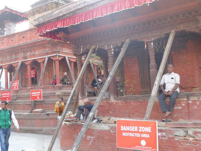 これは日本でも同じですが、危険という判定で立ち入りが禁止されているにも関わらず、カトマンズの王宮広場では、その中に観光客が平然と立ち入っていました。