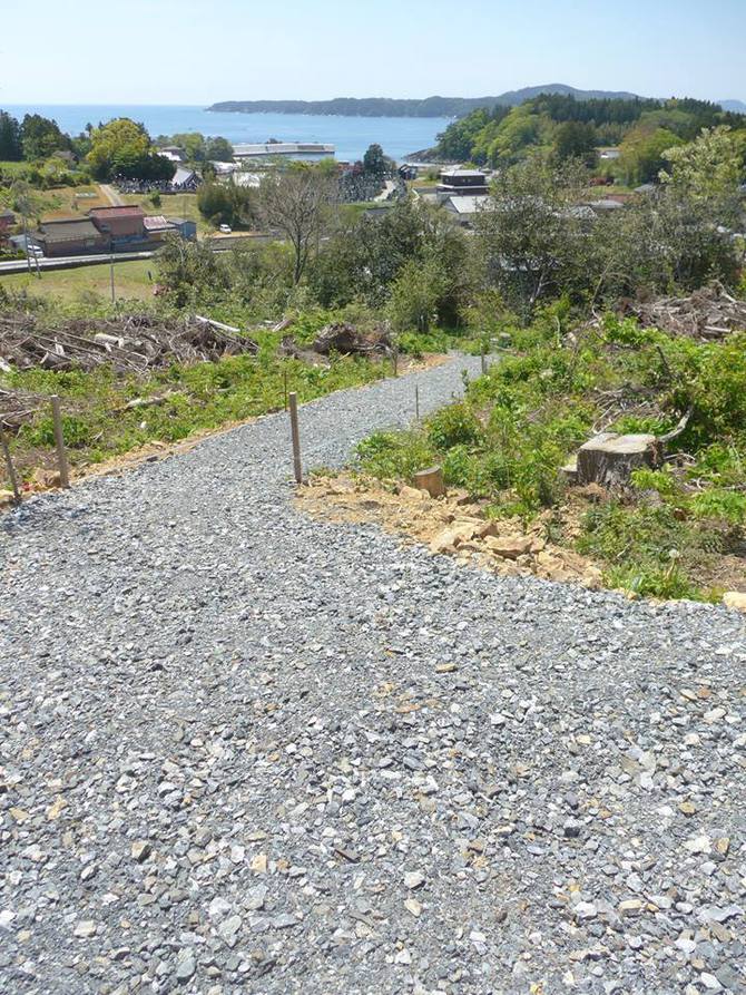 その素晴らしい復興の1例が、碁石海岸の泊里の集団移転である。素晴らしい自然を見晴らす高台に、泊里団地はあった。浜から団地まで、被災地の大人も子供も力を合わせて作ったという、砂利道の避難路が続いていた。コミュニティの維持ということで、自力再建の人と災害公営の人が一緒に暮らせるように、ゆったりとした曲道を挟む形で、その団地は形成されていた。