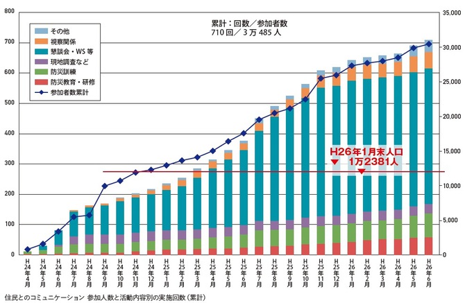 地域担当制を開始するとともに、同年6月から8月まで各地域でのワークショップを開催。同時に避難経路や避難場所の点検に当たった。ワークショップは延べ156回開催し、4634人が参加。避難経路295カ所、避難場所168カ所も見直した。9月には、地域ごとに住民と地域担当職員の合同開催で避難訓練を実施。10月から年末にかけて地区別懇談会も開催し、これらの成果を報告した。2013年には、さらなる地区を細分化した取り組みを開始した。目的は「戸別津波避難カルテ」の作成だ。