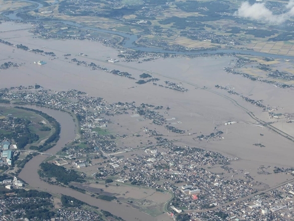 平成27年(2015)9月、関東・東北豪雨で鬼怒川が決壊し、茨城県常総市は市域の3分の1が濁流に没した。各地で計画高水位を超え流下能力を上回る激流となった。7カ所で溢水し、常総市三坂町で堤防が決壊した。浸水域は常総市役所本庁舎にまで広がり、同市の大半の田畑が泥沼に水没して豊かに実った水稲は廃棄処分された。 その間、被災者から必死の救助要請が消防署に殺到した。市民の逃げ遅れが続出し、ヘリやボートなどで計4258人が救出される異常事態となった。災害時における逃げ遅れ問題が大きくクローズアップされた。国土交通省はハードとソフトの両面から水害の減災を図る計画である。大惨事から4年が過ぎようとしている。決壊堤防の修復をはじめ下流の堤防強化工事は既に終了している。