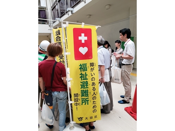 2019年7月24日、東京都大田区で矢口特別支援学校の「福祉避難所開設訓練」が行われました。福祉避難所の指定は全国で2万カ所を超えていますが、ほとんど訓練ができていません。その中で、矢口特別支援学校の福祉避難所開設訓練は今年で7回目になります。今回、初めて訓練の現場を見学させていただいたので、その様子を報告します。