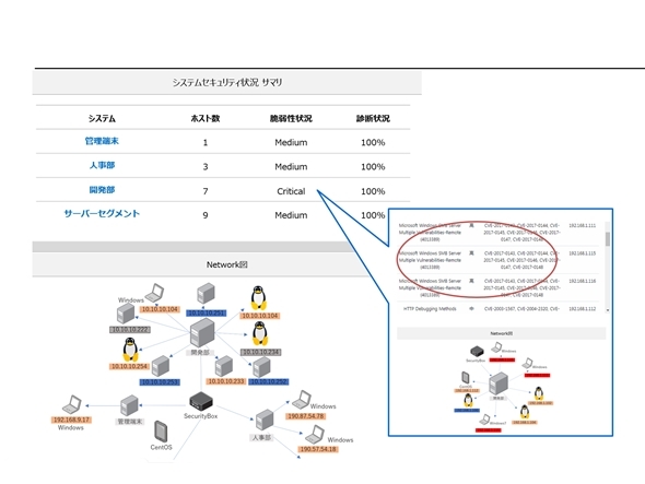 診断サービスでは脆弱性の有無を見つけることはもちろん大切です。しかし、それと同様、もしくはそれ以上にその脆弱性がどこに存在するのかといった、感染元の特定が大切です。理由はその後のアクションに大きく関係するからです。基幹ネットワークに存在する端末、ゲストネットワークに存在する端末などでトリアージ作業に差が出てきます。