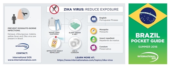 インターナショナルSOSは『ブラジル夏期渡航ポケットガイド2016』を作成しました(英語版)。蚊が媒介するジカ熱の予防法と、渡航の際に便利な健康と安全に関する単語(英語→ポルトガル語)の対訳表になっています。