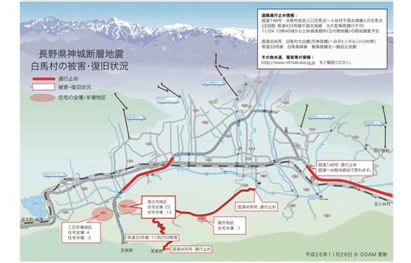 他には地震の4日後には車載カメラでお客さんが集まるエリアや村内の道路、長野から入って来る道、被災した堀之内地区でも撮影し、何もコメントをつけずにYouTubeやFacebookで流しました。見ていただくとわかりますが、道路もガタガタではないし建物も崩れていない。これを感じてもらえればと思いました。
