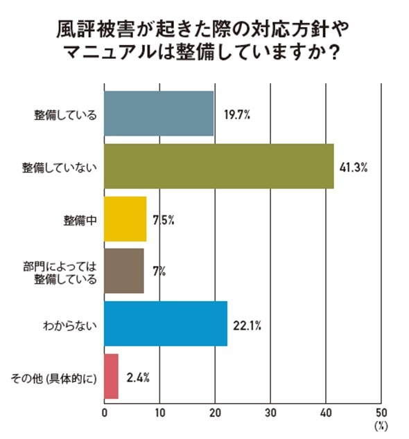 風評被害が発生した際の対応方針やマニュアルを整備しているかとの問いについては、