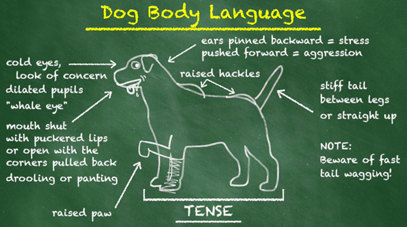 ・尻尾が直立した状態、もしくは股の間に巻き込んでいる状態