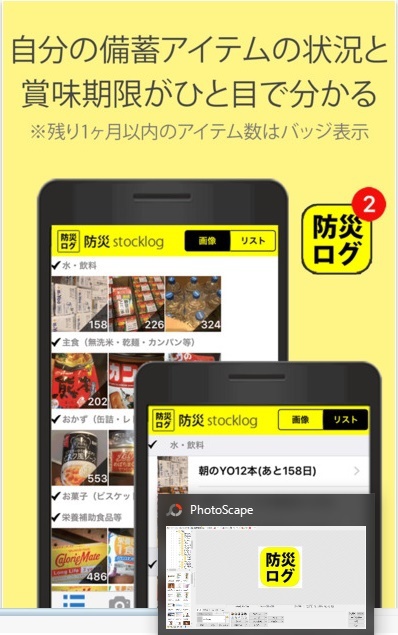 デジタルコンテンツの制作・配信や情報システム業務を行う株式会社エア(本社:東京都港区)は8月12日、備蓄食料や防災グッズなどの防災アイテムが一括管理できるアプリ「防災ログ」の提供を開始すると発表した。いま何の備蓄品があるかが分かり、賞味期限が1カ月を切ったアイテム数はバッジ表示されるので、期限切れを事前に防ぐことができる。