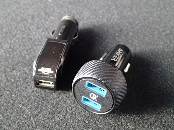 このシガーソケットに、USBソケット変換アダプター(カーチャージャー)を購入して差すだけで、USB充電対応のスマートフォンやタブレット端末の充電ができるようになります。
