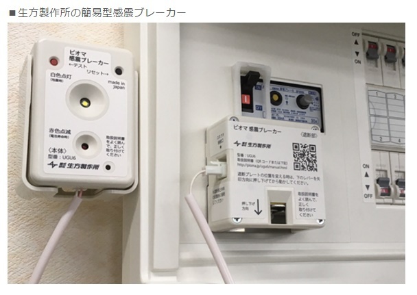 設置するブレーカーは、住友商事とガスマイコンメーター向け感震器国内トップのシェアの株式会社生方製作所が開発した製品。電気工事が不要で、各家庭で簡単に取り付けができる。正確に地震波を検知し、電気の供給を遮断するまで3分間の猶予期間(避難時間)を設定している。