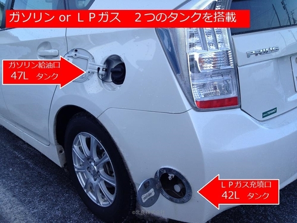 そして、改造っていっても実にシンプルで、LPガス充填口が付いているだけ。イタくないばかりか、LPガス充填口と言われるまでわからないレベルです。