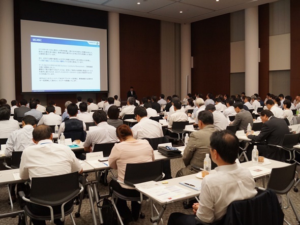 サプライヤーを対象にしたセミナーは今年2回目で、全国の取引先69社から約100人の防災・BCP担当者が参加した。冒頭、購買本部購買グループリーダーの西牟田克三郎氏は「当社が取引させて頂いているお客様の多くは、半導体や電子部品のメーカーで8割が海外にある。
