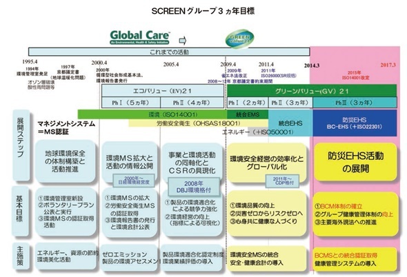 SCREENグループは、国内ではいち早くEHSの取り組みをスタートさせ、現在グループ全体で環境と労働安全、