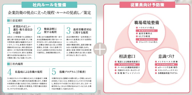 Q1.うつ病を発症し従業員の就業が困難になったり、自殺に至り遺族が損害賠償を請求するケースが増え、メンタルヘルス対策が急務となっています。