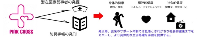 「潜在医療従事者」に対する新たな職域創出を目指すPINK CROSS PROJECT実行委員会(所在地:東京都中央区)は、防災の正しい知見を備えた看護師を「防災ナース」と称し、彼らを育成する事業を11月1日に始動する。発災時の生活再建のための知識をまとめた「PINK CROSS防災手帳」の同時発刊と提携団体との取り組みにより、活動の普及を目指す。