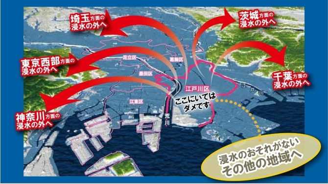 今回、都内では1060カ所の避難所が開設され約8万人が避難した。避難者をそれ以上受け入れられない避難所も多数発生したが、その数は決して多いとは言えない。荒川や江戸川が決壊すれば、江東5区の9割に当たる250万人が浸水被害に遭い、その他の区や市町村でも大規模な被害が発生し、東京は長期間機能停止になる。たまたま避難しなくて助かった人も、それが正しい行動だとは決して思わないでほしい。江東5区では今回、広域避難の呼びかけを行わなかったが、いずれくるであろう1000年に一度の大規模災害時には、3日前からの避難準備と2日前の広域自主避難が求められる。