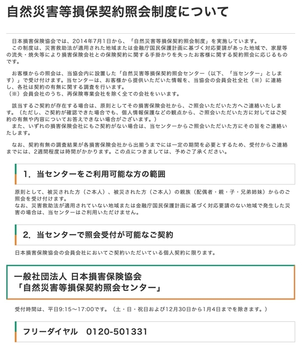 家族が保険をかけていたものは、他の人がわからない場合もありますよね。災害には調べる制度があるんですね。