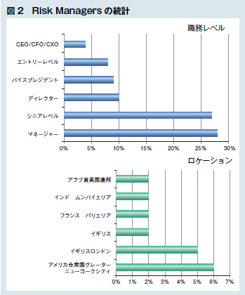 例えば、前述のRisk Managersのグループの統計を見ると4万2000人以上の人が参加し、参加者で最大なのがマネージャーだ。さらにロケーションを見てみると、アメリカ、イギリス、フランス、インドという順となっている。(図2)。このグループに参加すると、世界中の管理職レベルの人と交流できる可能性が高い。