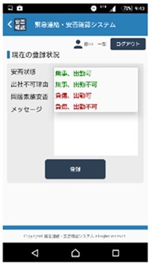 また、スマートフォンやタブレット用に安否登録専用アプリを提供し、携帯電話の電子メールを使用していない従業員の安否登録も可能になる。安否登録が必要な従業員に対してのみ、このアプリにプッシュ型で通知をすることができるので、企業などでは、私用の電子メール情報など従業員のプライベート情報を保有するリスクを低減することができる。