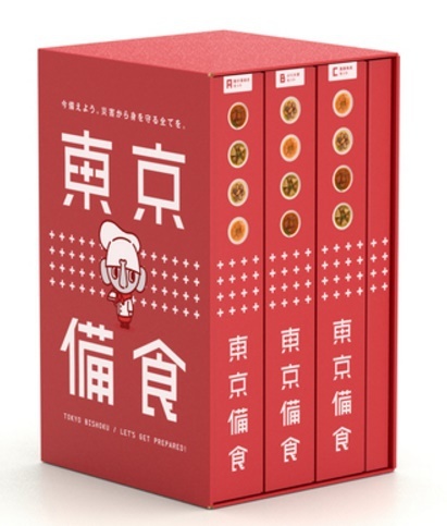 美味しいだけでなく災害時の栄養バランスも考慮したメニューを缶詰にして、「東京防災」チームの編集・デザインで本型に収めたもの。広尾などに店を構える「賛否両論」の店主・笠原将弘氏監修のもと、1食分が主食・主菜・副菜・汁物・デザートの5品目となっている。防災や備蓄に関する情報をまとめた冊子と、3食分(1食5品)の備蓄食で1セットとなっていて、本棚に備蓄することもできる。