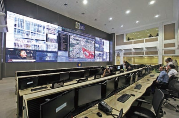2013年にリオデジャネイロ市の中心地域に完成した統合コマンド・コントロール・センター地域拠点(CICC-R:Regional)では、大規模なイベントが行われる時には大会の準備段階から州や政府機関、州警察、軍警、消防、ハイウェイポリスなど、さまざまな関係機関の担当者が集い、大会に向けた情報収集やビデオ監視にあたっている。ブラジリアに設置されている国の統合コマンド・コントロール・センター(CICC-N: National)や、統合テロ対策センター(CIANT: Integrated Anti-terrorism Center)、国際警察連携センター(CCPI: International Police Cooperation Center)ともつながっており、さらに、デオドロ、マラカナン、コパカバーナ、バーラ地区に設置された地区の統合コマンド・コントロール・センター(CICCS)や、会場ごとに設置された会場統合セキュリティ・センター(CISI)とも情報が取り合える仕組みになっている。日本に例えるなら、ある大きなイベントのために、国の災害対策本部と都道府県、開催都市、さらには開催地区の対策本部がシステム的につながっているようなイメージだ。