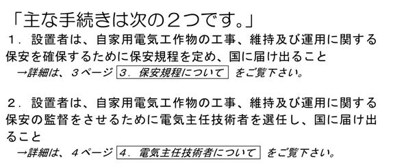 自家用電気工作物に該当すると、以下の手続きが必要になるのです。