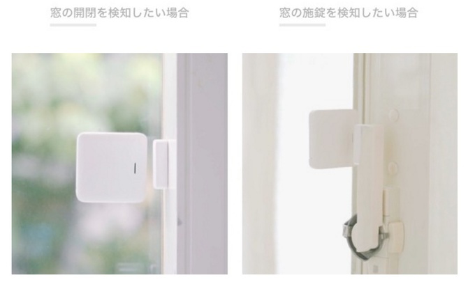 センサーと専用磁石の距離を測ることで、窓や扉の開閉を検知。付属の両面テープを使って、窓や窓のサッシ部分にセンサーを、鍵レバーの部分に磁石を貼り付けるだけで使うことができる。貼る場所によって、窓の開閉か施錠かなど、検知の対象を変えられる。