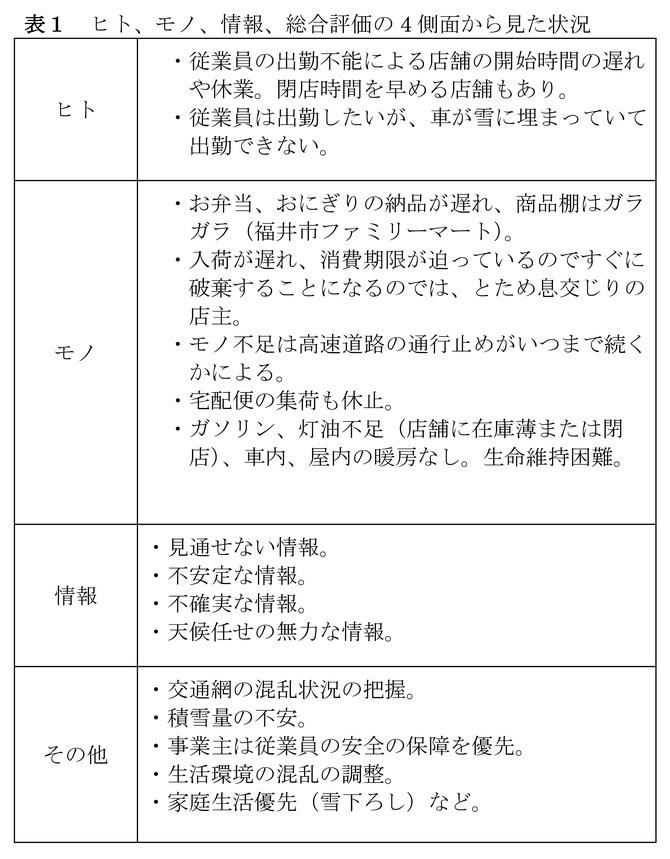 生活物資不足(食関連店舗事情)による困窮と混乱(2.7.14 社会)1)の記事を参考に、住民生活に関わる問題点を以下にまとめました(表1)。
