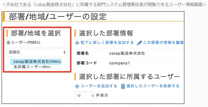 また、人事採用活動の際には、親子会社の関係の場合でも採用権は子会社が持っていて、独自に採用活動を行っている場合が多い。今回のサービス提供では、子会社が人事/ユーザー情報などを更新できるので、親会社の管理者がユーザーデータを収集する必要がなくなる。