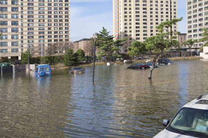 サンディの上陸は、天文満潮時と重なったので、ニューヨーク市の大西洋側の海岸沿いに前例のない高潮をもたらした。