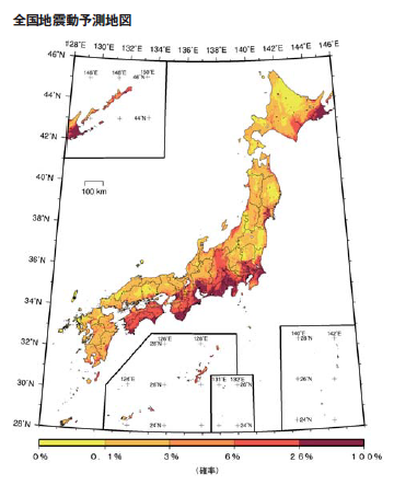 地震調査研究推進本部の地震調査委員会が 17 年3月に公表した「全国を概観した地震動予測地図」は、どこで、どのくらいの確率で、どのくらいの規模(揺れ)の地震が発生する可能性があるのかを、 主要活断層と海溝型地震に分け、初めて明らかにした。