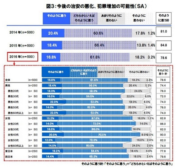 治安悪化や犯罪増加を78.6%、災害増加を84.4%が懸念と回答。
