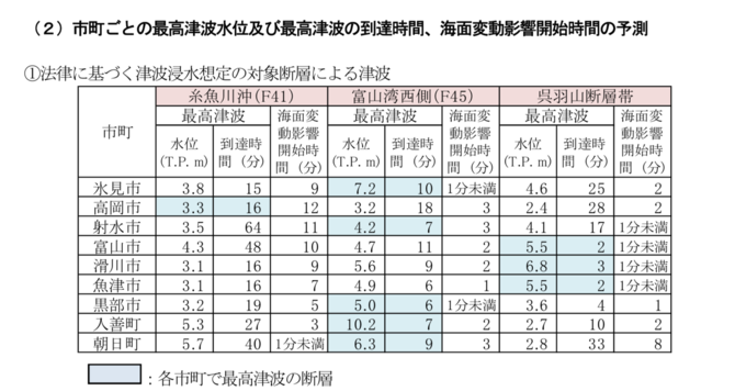 しかし、あまり地元の方にも知られていないことに逆に私が驚いているのですが、富山県の津波到着想定時間は全国でも1、2を争うほど短いのです。