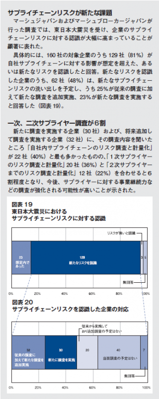 保険関連サービスを提供するマーシュジャパンと、その 100%出資会社のマーシュブローカージャパンは、 企業の損害保険の購買体制などリスクファイナンスへの取り組みを調査し、その結果をまとめた。国内では、 過去にコンサルティング会社のタワーズペリンがリスクファイナンスに関する調査を行ったことがあるが、 保険の購買体制まで踏み込んだ調査は国内初という。