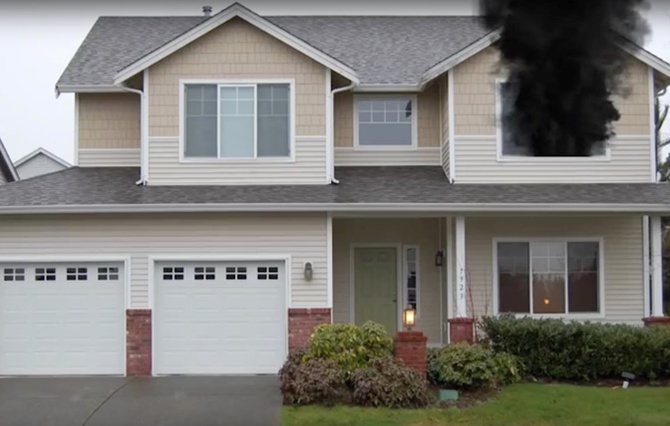 一戸建ての家屋火災で人命検索目的で外部から侵入する際、玄関が開いていれば一番簡単なのですが、ほとんどの場合は玄関は施錠された状態が多いため、外壁部から2連梯子などを使って進入すると思います。
